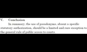The case is Roe v. Smith, just decided today by the Second District; it's only the third binding California precedent, as I see it, expressly dealing with pseudonymity (the others are DFEH v. Superior Court, from the Sixth District in 2022, and the considerably less detailed Santa Ana…