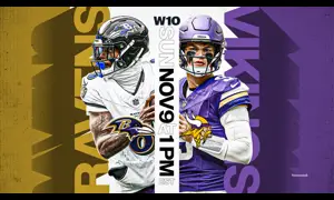 Lamar Jackson and the Baltimore Ravens face Justin Jefferson and the Minnesota Vikings in Week 10 of the NFL season on Sunday at U.S. Bank Stadium.