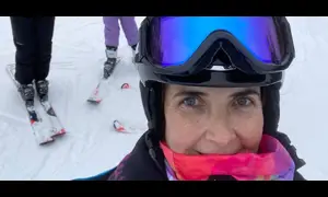 Liz Healy skiing with family and friends before her diagnosis