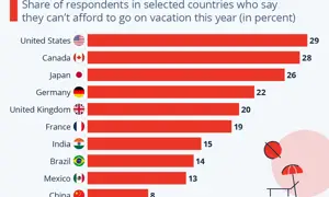 Data from the most recent Consumer Insights survey from Statista shows that almost three out of ten Americans (29 percent) say they won't be able to go on vacation this year due to a lack of funds.