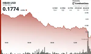 Hedera’s HBAR Slides 5% as $0.19 Support Crumbles, Traders Eye Technical Reversal