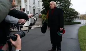 Bescarfed Trump tells reporters that Jack Nicklaus will ‘do some work’ on longtime presidential golf course