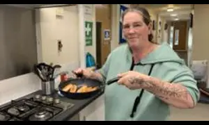 Dawn Hayes is cooking sausages and hash browns in the kitchen of Shirecliffe Community Centre in Sheffield.