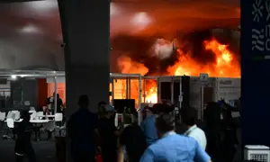Panicked delegates rushed for exits as flames from one of…