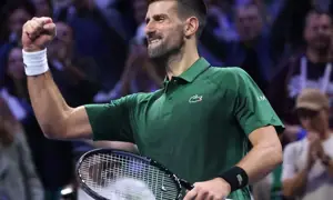 Novak Djokovic celebrates after winning during the Hellenic Championship in November 2025.