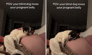 Blind Dog Loves Owner’s Pregnancy Bump, What She Captures Melts Hearts